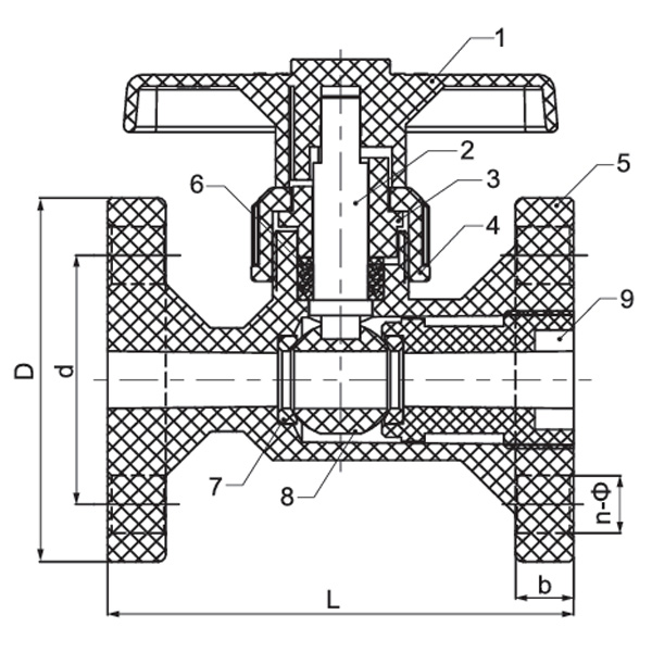 Comhlacht FRPP/RPP Comhla Liathróid DN15-DN100 Díreach-Trí Comhla Liathróid Seasta Flanged Plaisteacha Ardteochta le haghaidh Úsáid Uisce Tionscail Caighdeán ANSI