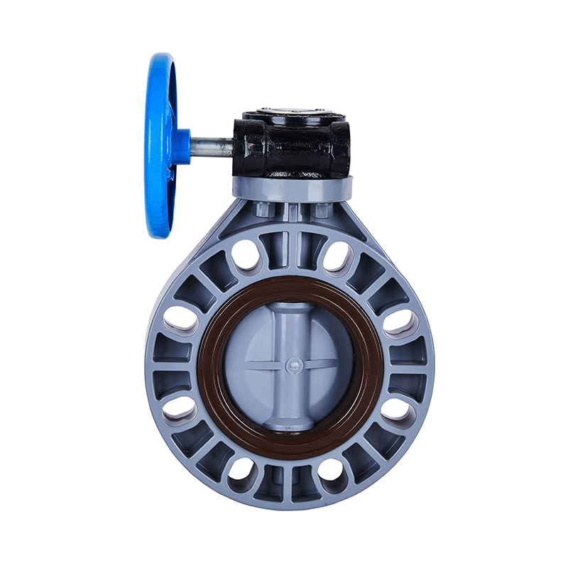 Saincheaptha Branda Nua PVC-C Worm Gear Smooth Gas Comhla Féileacán DN40-1000, Liath, DIN, JIS, ANSI Caighdeán, 4-Orlach Flanged Comhla Plaisteacha Caighdeán ANSI