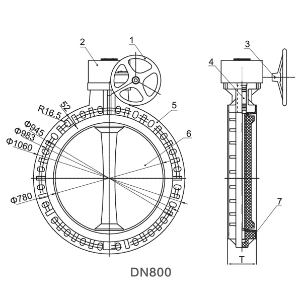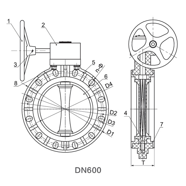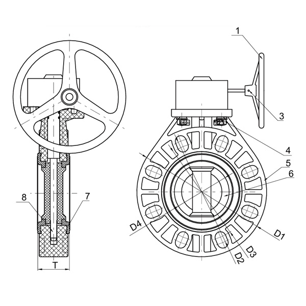 PVDF D371X-10F Comhla Féileacán Worm-Gear DN40-1000 1-1/2"-30" Caighdeán ANSI