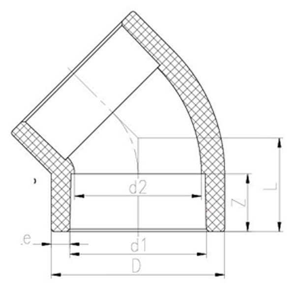Soicéad Leá Buí Cré-mharthanach Sár-mharthanach 45° Cruth Elbow Comhionann Toisí Gairmiúla DN15-100 Feistis Píopaí Plaisteacha PPH 45° Elbow