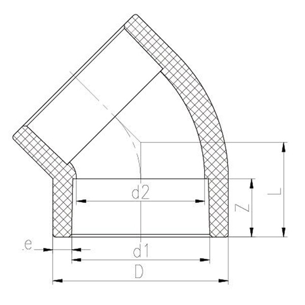 Super durable Bán PVDF 45° Elbow Cruth Comhionann Toisí Caighdeánacha Gairmiúla DN15-DN100 Feistis Píopaí Plaisteacha Foirmle PVDF 45° Elbow