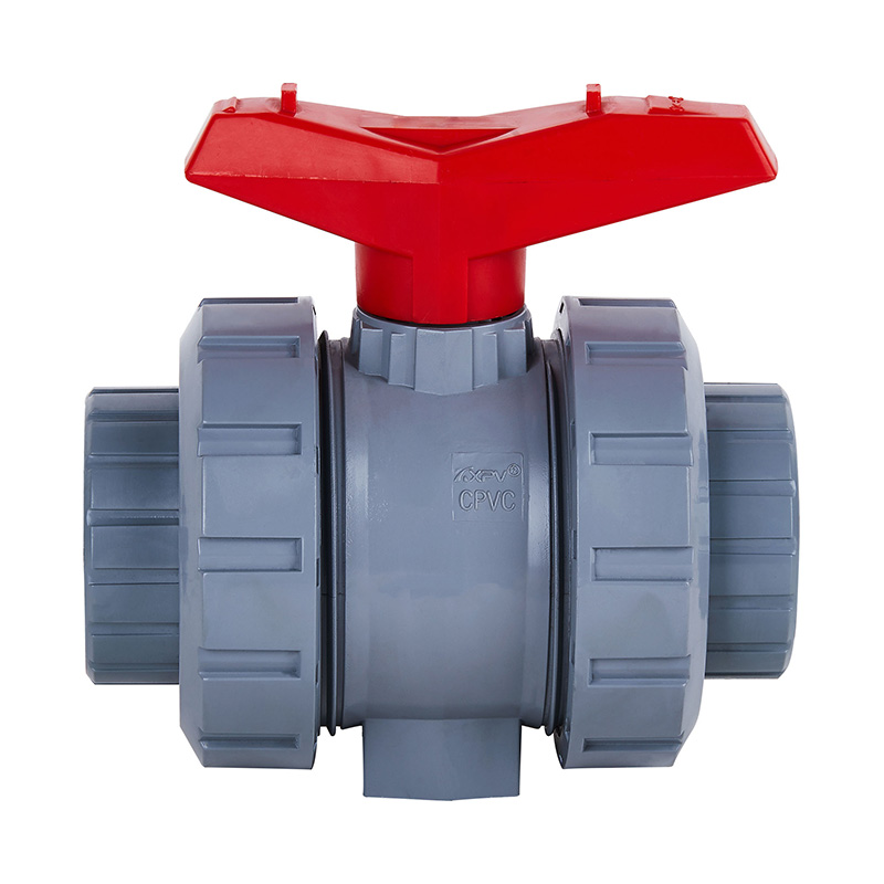Saincheaptha DN15 DN80 DN100 teocht mheán PVC-C fíor dúbailte-aontas comhla liathróid soicéad lámhleabhar teocht mheán DN15-100 1.0-1.6Mpa comhla plaisteach tionsclaíoch