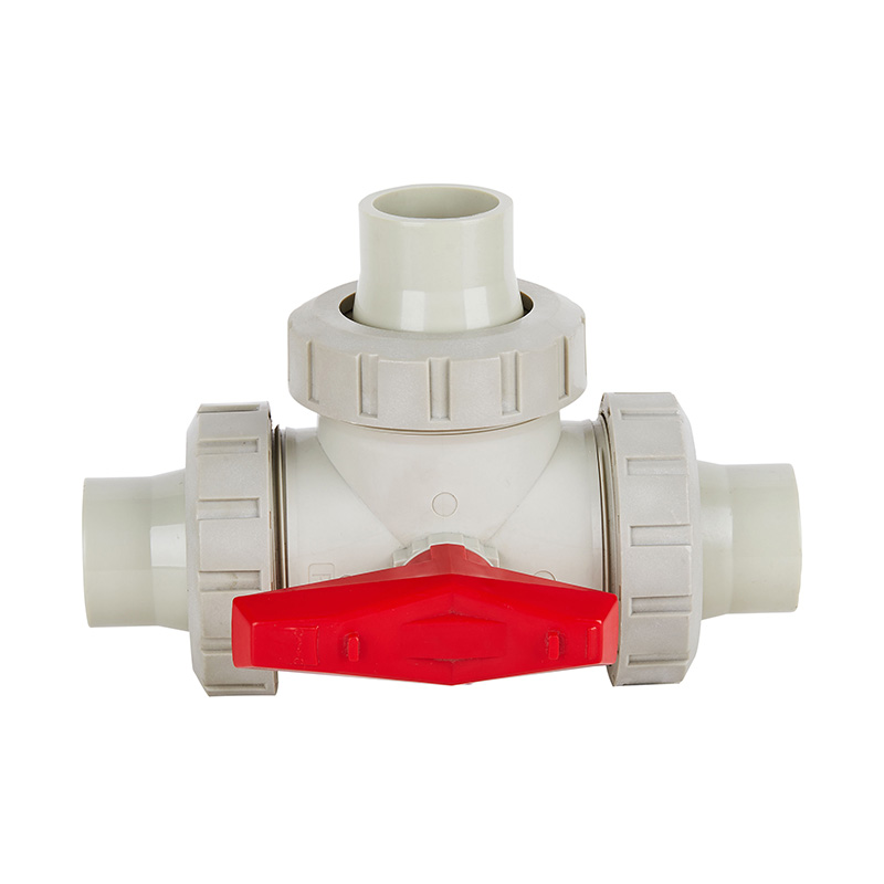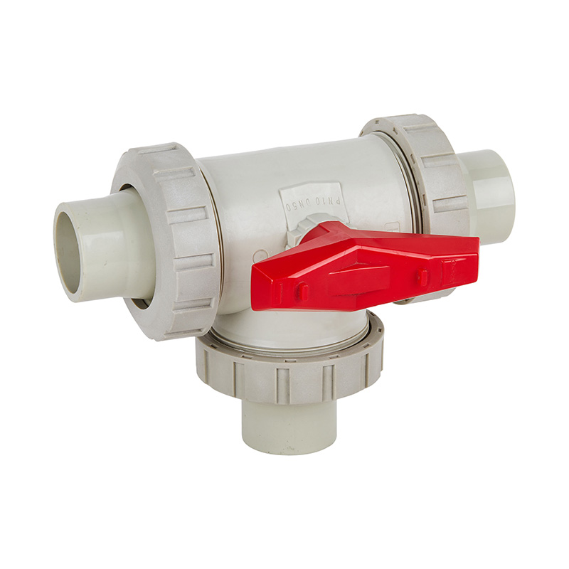 Praghas Monarcha Ardfheidhmíochta Táthú Earthy Buí PPH Tee Soicéad Liathróid Comhla Lámhleabhar Díreach Trí Chomhla Plaisteacha Tionscail agus Teaghlaigh Frithsheasmhach in Ardteocht DN15-DN100