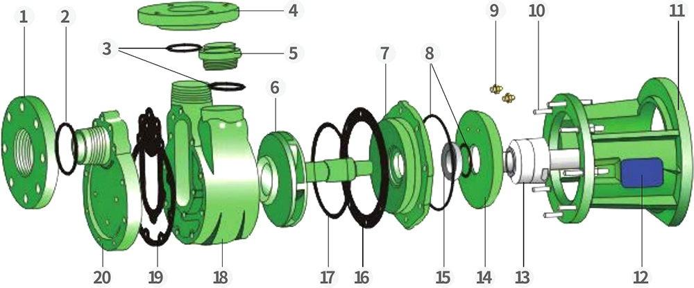 Déanann ár monarcha speisialtóireacht i ndéantúsaíocht caidéil lártheifeacha agus féinphríomha uile-phlaisteacha resistant creimeadh in dhá ábhar - PVDF agus FRPP - thar cheithre shraith (FV, FP, FVZ, FPZ). Tá caidéil PVDF oiriúnach chun aigéid láidre, ocsaídeoirí cumhachtacha, halaiginí, hidreacarbóin aramatacha, comhdhúile alafatacha, agus tuaslagóirí clóirínithe a láimhseáil, le raon teochta oibriúcháin -40 ° C go 140 ° C. Tá caidéil FRPP iontach le haghaidh alcailí láidre chomh maith le haigéid ghinearálta, bunanna, salainn, agus a gcuid díorthach, le raon teochta oibriúcháin -40 ° C go 90 ° C. Is gnách go dtiomáineann mótair de chineál Y atá tíosach ar fhuinneamh na caidéil. Is féidir mótair cruthúnas pléascadh a sholáthar ar iarratas.