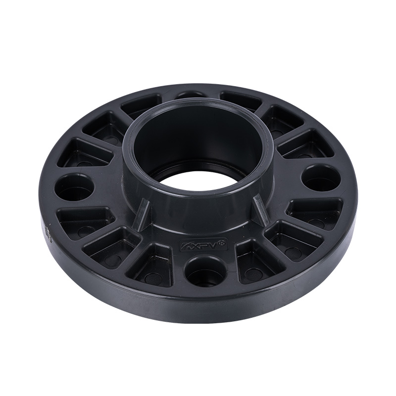 Flange Soicéad PVC-U Nua, a Úsáidtear go Coitianta Dorcha Liath DN15-DN200 Feistis Píopaí Plaisteacha Ceimiceacha agus Sláintíochta
