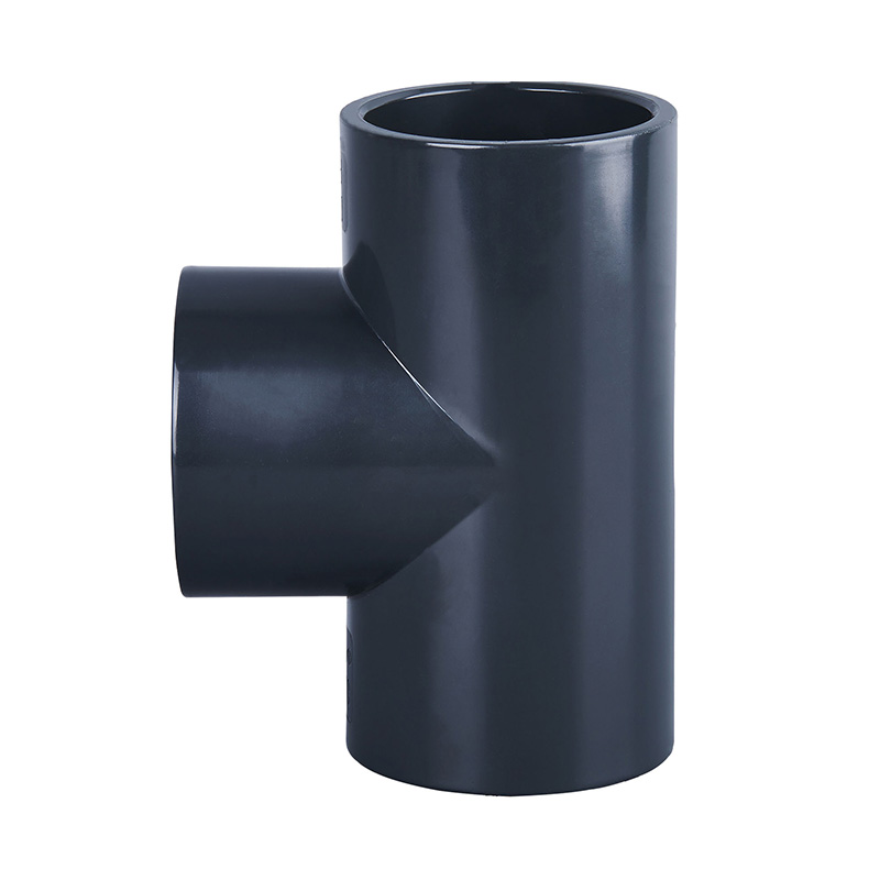Praghas Monarcha Dark Grey PVC-U Tee Cruth Comhionann Ceanglóir Píobáin Plaisteacha DN15-DN600 Ceanglóir Píob Uisce Nascóirí Díreach Tee le haghaidh Draenála agus Sláintíochta